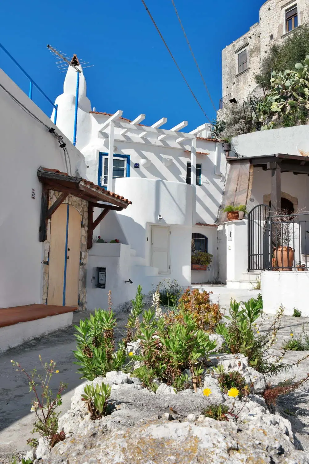 - 🏘️ Un centre historique pittoresque : le vieux village de Peschici est un labyrinthe de ruelles étroites et sinueuses qui invitent à la flânerie. Les maisons blanches typiques de la région, les petites places et les églises médiévales ajoutent au charme de la ville. Avec ses escaliers fleuris, ses maisons blanchies à la chaux et ses petits artisans locaux, le vieux village respire l’authenticité.